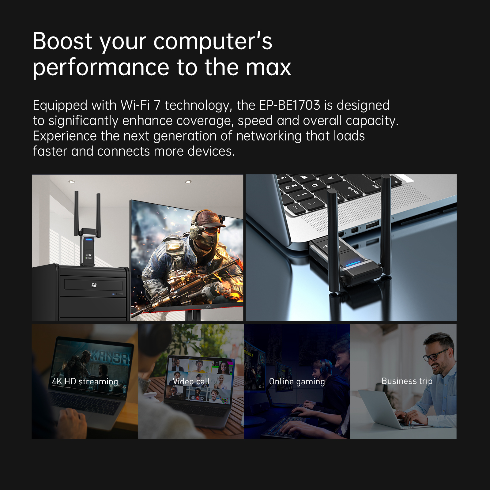Un singur adaptor, pentru fiecare scenariu: Acest adaptor USB WiFi 7 oferă performanțe fără compromisuri pentru jocuri competitive, multitasking solicitant și streaming 4K/8K fără întreruperi. Dezlănțuie pe deplin vitezele de internet de top de astăzi și este pregătit pentru ceea ce urmează.