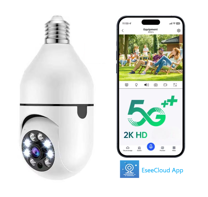 Este la fel de usor ca inlocuirea unui bec sa instalati camera si sa o configurati prin modulul Upgrade Wi-Fi in cateva minute. Compatibil cu reteaua WiFi de 2,4 GHz si 5GHz. Descarcati aplicatia "EseeCloud" din App Store sau Google Play sau instalati automat aplicatia folosind codul QR. Doua moduri de adaugare a camerei in aplicatie sunt disponibile: Bluetooth sau Wi-Fi. Dupa ce aplicatia detecteaza automat camera, adaugati "+", alegeti reteaua si banda (2,4 sau 5,8 GHz), introduceti parola, pozitionati codul QR in fata camerei si gata. Atat de simplu!!!