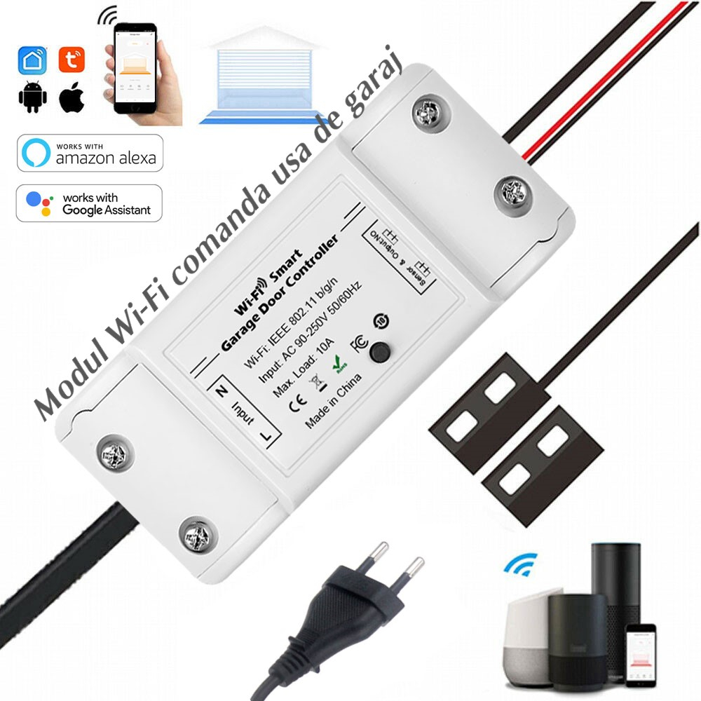 Modul de comanda Wi-Fi FRAMMINO, de deschidere/inchidere automata a Usii de Garaj prin aplicatia mobila Tuya Smart sau SmartLife, Control prin Aplicatie & Voce, compatibil Amazon Alexa si Google Assistant